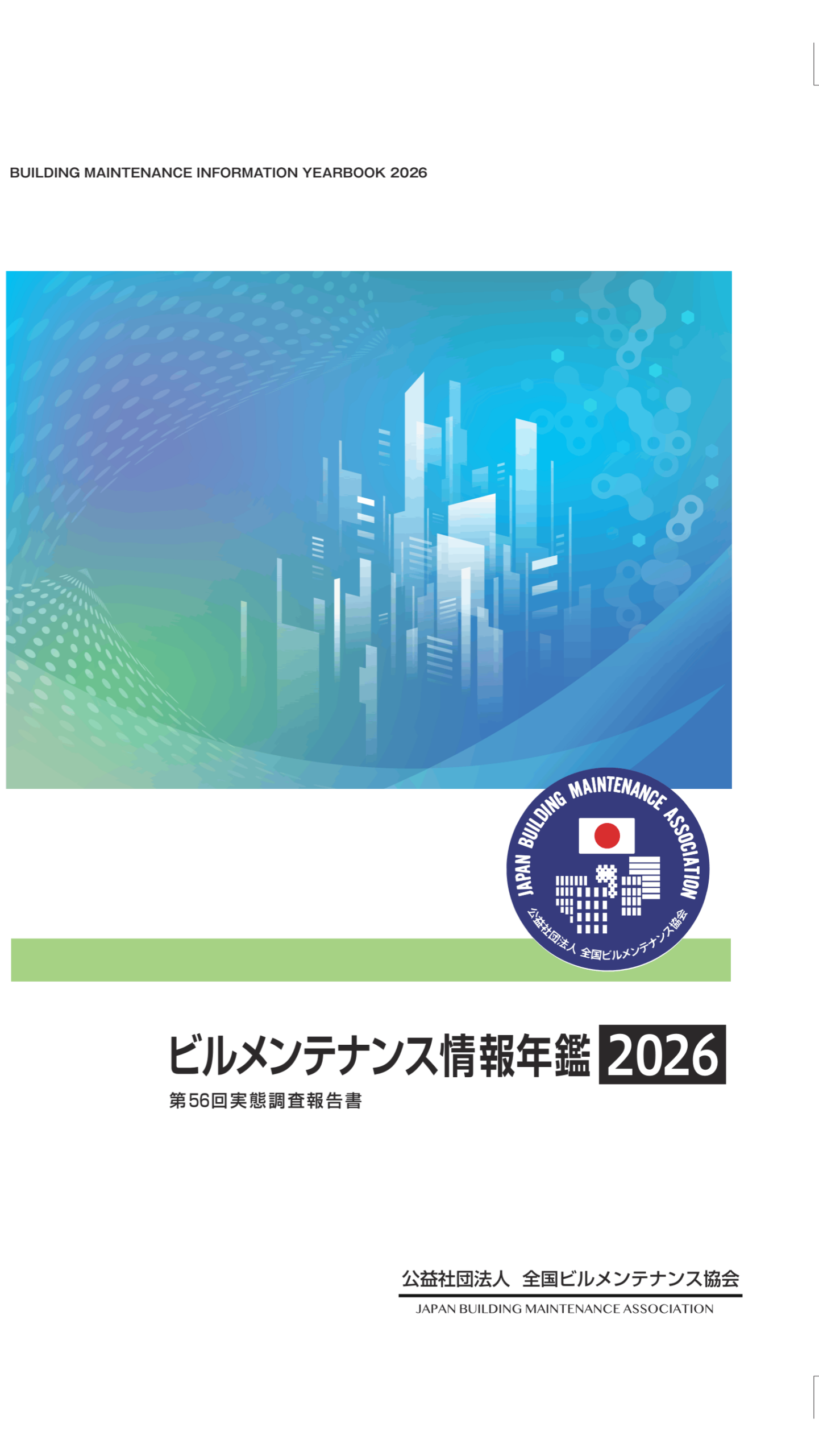 全国協会が2025年10~12月に実施した「第56回実態調査」の結果をまとめた『ビルメンテナンス情報年鑑2026』(PDF版)を公開しました。下記をクリックしてご利用ください。