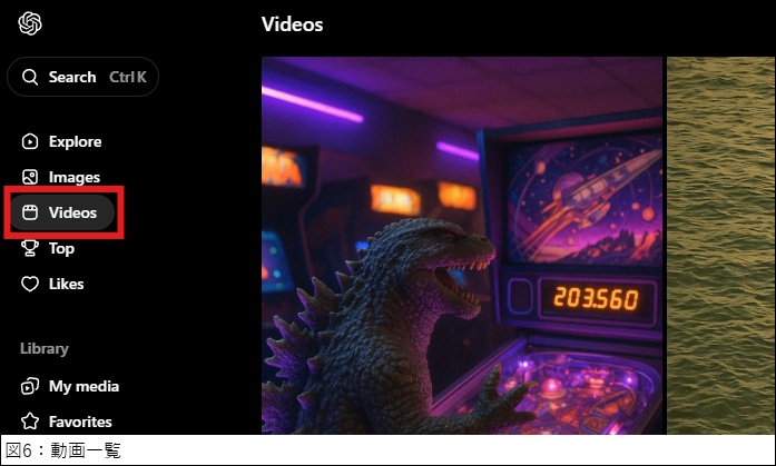 動画は、左側メニューの「Videos」をクリックすると一覧が見れます。(図6)