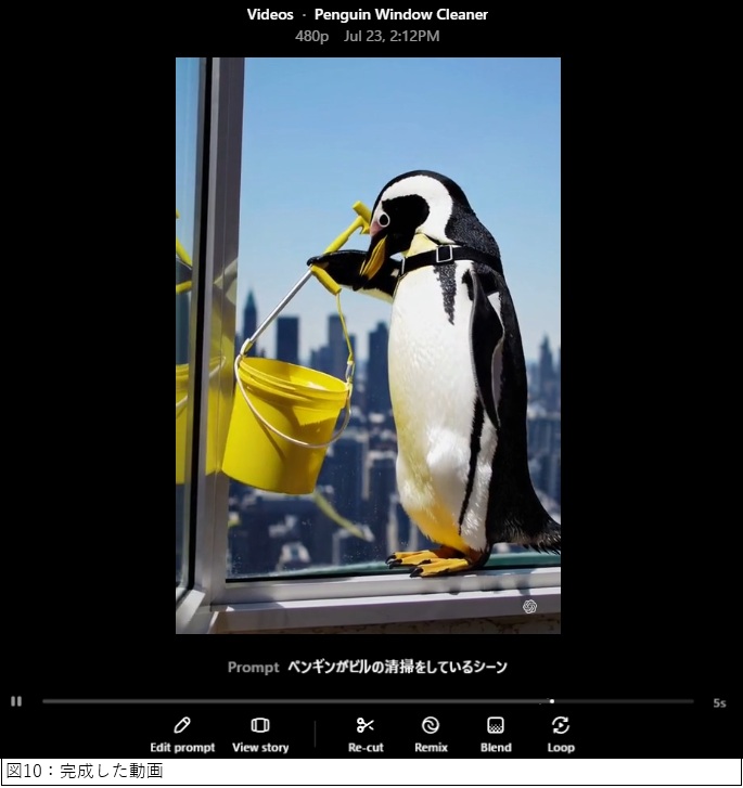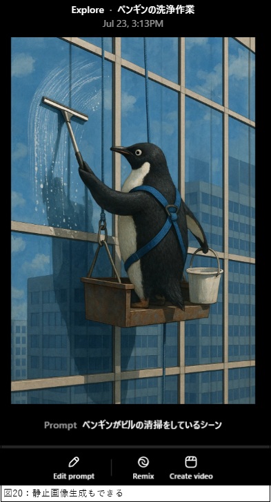 実際に「ペンギンがビルの清掃をしているシーン」と指定。(図20)