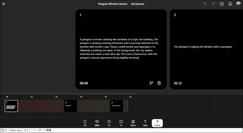 「Video story」はストーリーボードの編集画面に遷移し、シーンを編集できます。(図13)