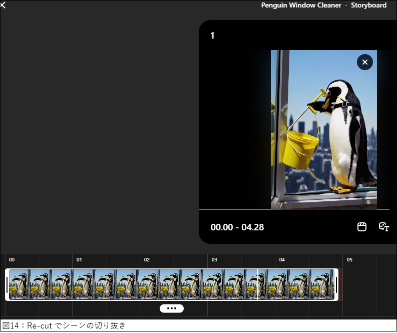「Re-cut」は、動画で必要なシーンを切り取れる画面に遷移します。(図14)