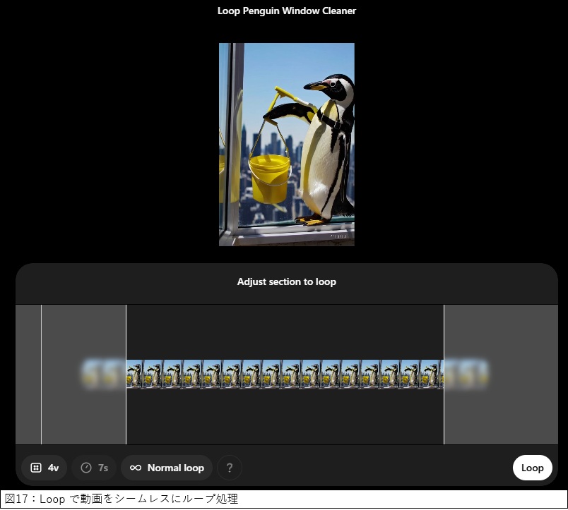 「Loop」は動画の最初と最後がシームレスに繋がって無限にループしているように処理できます。(図17)