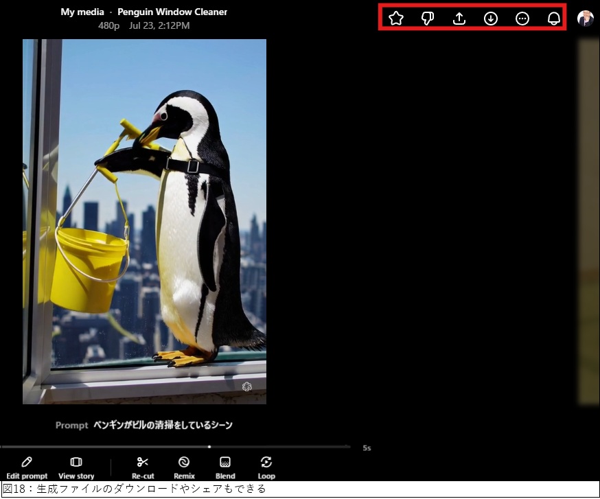 生成した動画はパソコンにダウンロードしたりシェアしたりすることができます。