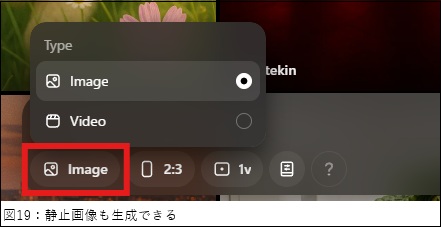 やり方は簡単で、動画を作る説明の個所で「Image」を選ぶだけです。(図19)