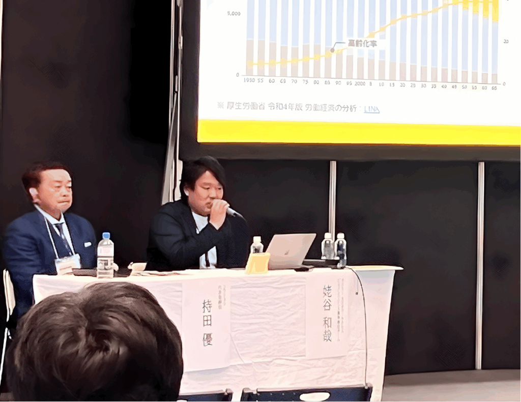 事例紹介のあとは、導入初期の不安や受け入れ体制づくりについて、ファシリテーターの森脇座長と持田社長の掛け合いで話が進みました。