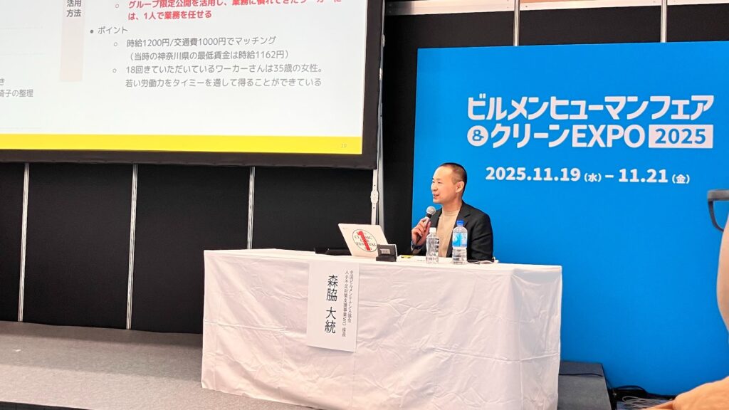 2025年11月19日ビルメンヒューマンフェア2025の講演会A会場にて、「生産性向上の要は人材 導入企業が語るスポットワークの活用」セミナーが開催されました。