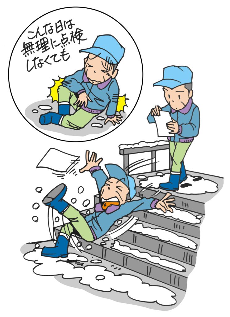 CASE98 階段と雪のダブルパンチで転落、尾骶骨骨折!―日常点検も天候によって実施の可否を検討―