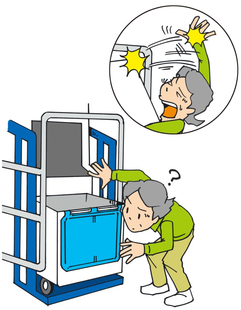しかし、ゴミステーションで扱う大型の設備では、事例のような事故も予想され、装置が起動しない、急停止したなど、異常時を含めた取扱いマニュアルを作成し、取扱者には操作訓練、研修を必ず行いましょう。