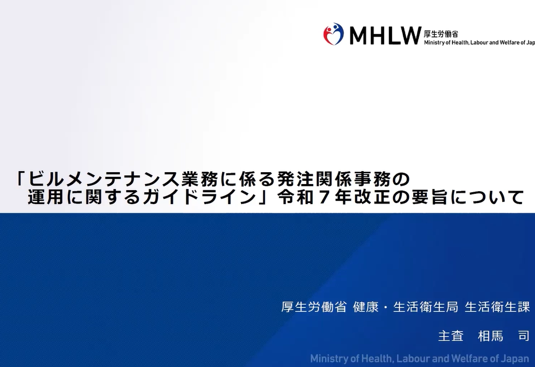 「ビルメンテナンス業務発注関係事務ガイドライン」最新版の概要と運用方法 (講師)厚生労働省 |